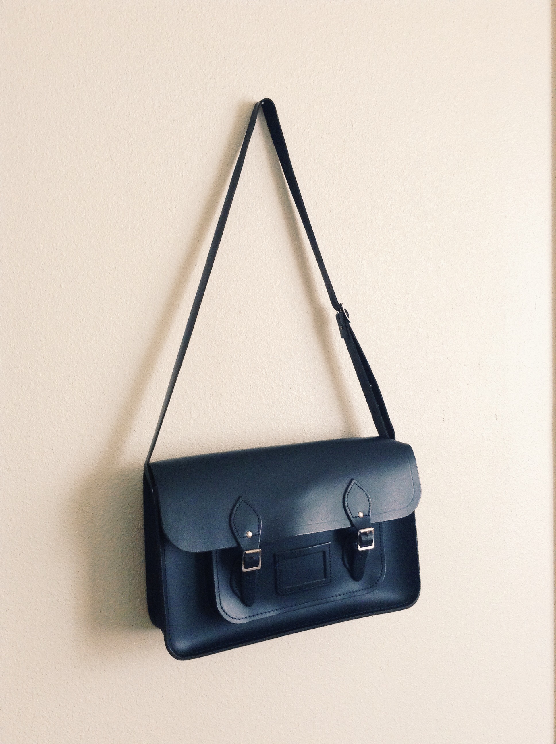 I can’t wait to see how this bag will age. It fits my iPad, a moleskine journal, pen case, snack, phone, wallet, reusable baggu bag, and occasionally another book. I have vowed to love this bag until it falls apart. Which reminds me, must purchase weatherproofing spray. After years of searching, this bag fits all my needs. As a graduate teaching assistant, I need to look professional, while remaining a slightly casual. It can be dressed up or down, and pairs easily with all of the colors in my closet . When I bike to work, I leave it at home. When I go out via car, I take it with me. Simplifying my belongings has meant searching for multi-purpose pieces. Now, a year after purchasing on eBay, I don’t look at handbags. There is no need. Not on eBay, not in new online shops, thrift stores, and so forth. It took years of searching, trying on different style personas, graduating from college, etc. The satchel is a classy and understated piece. It reminds me of my British heritage (grandparents are British), cost a minimal amount, evokes a nostalgia for classic school bag designs from the early part of the century, and gets used daily. What more could I ask for? All that is left is the further development of appreciating the things I have rather than constantly seeking the next best “new” thing. When it eventually does die on me, I’ll be replacing it with another pre-loved Cambridge satchel. Perhaps even a smaller size, as this one is sized perfectly for the laptop that I do not own.